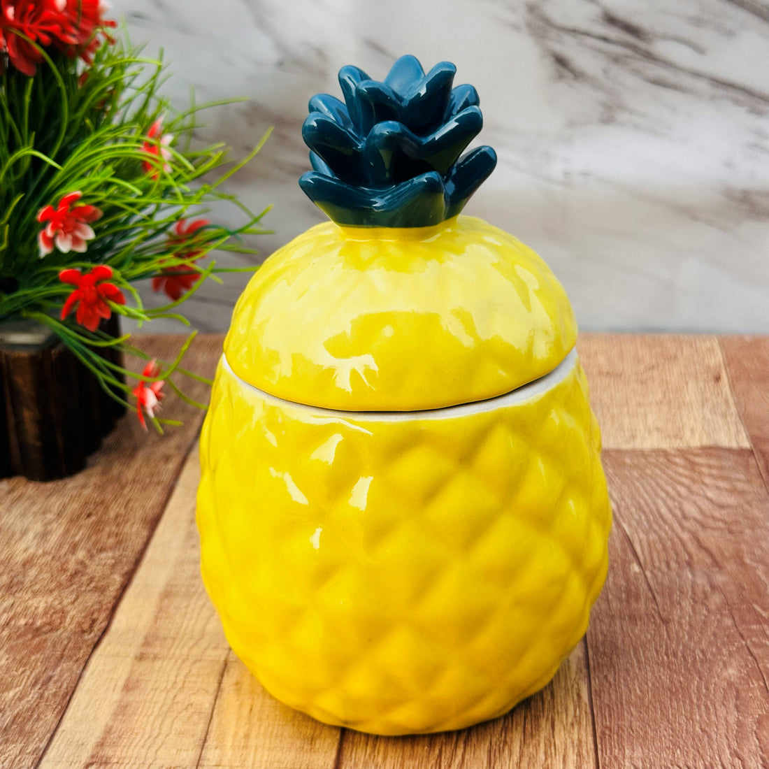 utensil master Pineapple Jar – Ceramic Storage Container with Lid, Decorative Fruit-Shaped Jar for Kitchen & Home Decor, 7.5W x 19.5H cm, Yellow