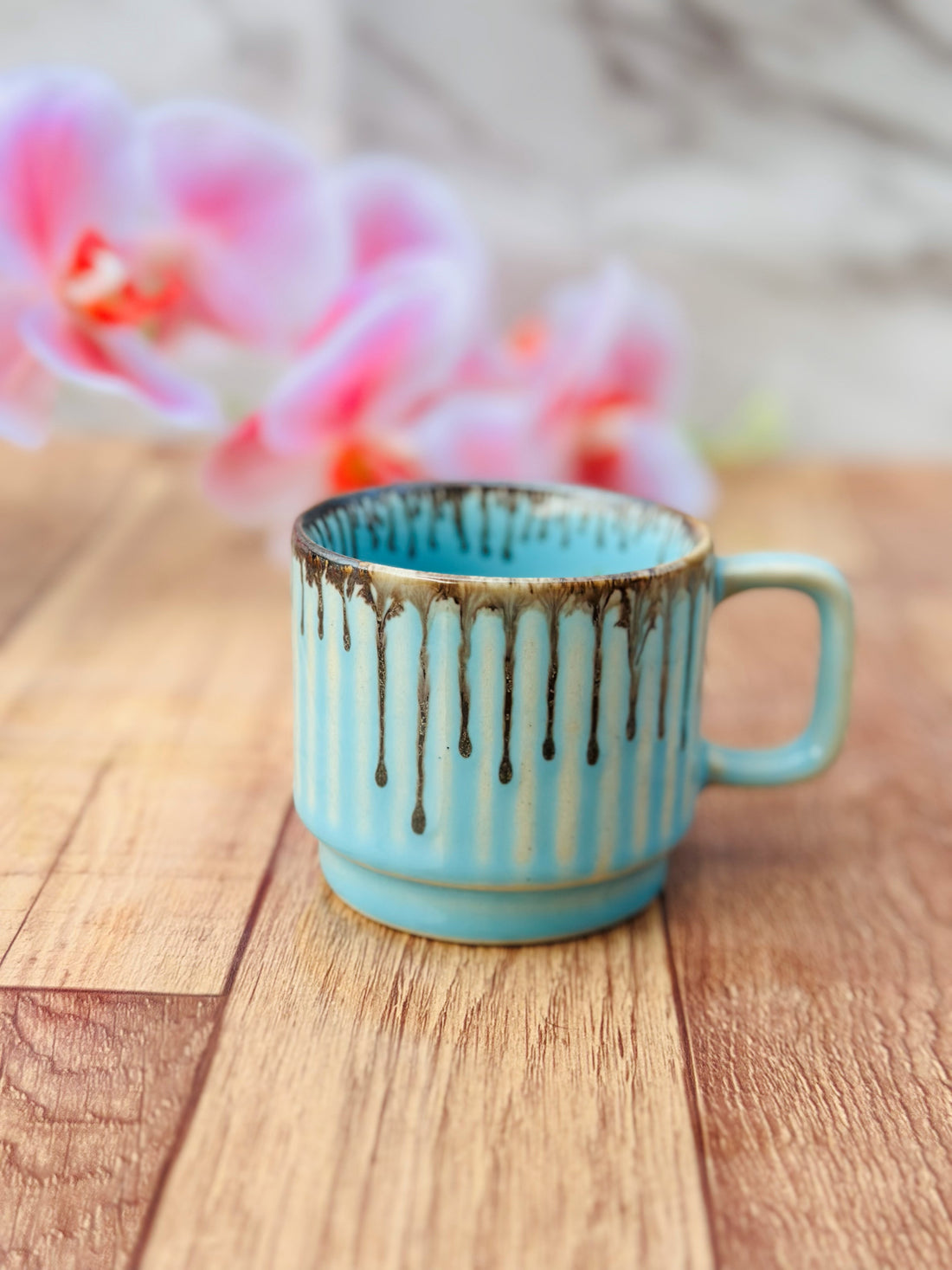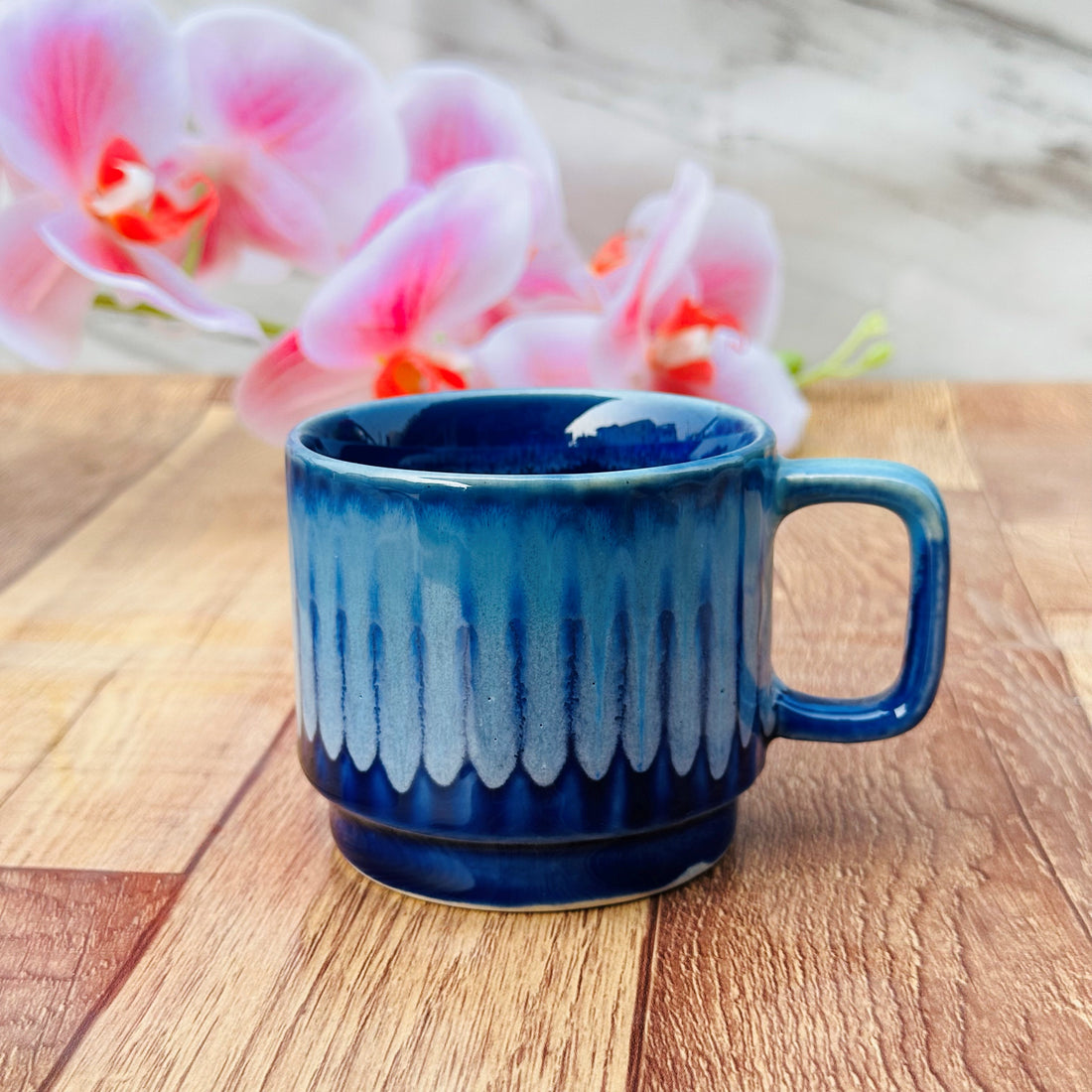 utensil master Ceramic Coffee Mug - Large 250ml Capacity, Microwave & Dishwasher Safe, Durable & Stylish Design for Home, Office, or Travel - Gift for Coffee, Tea (Blue Lines)