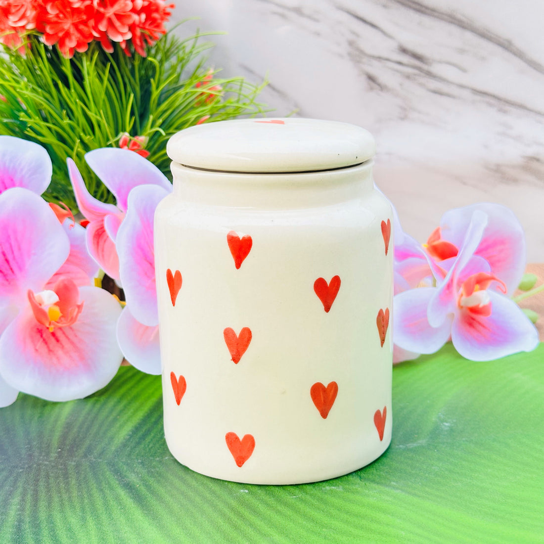 utensil master Handmade Heart Design Ceramic Food Jar with Lid – Unique Decorative Pickle Jar for Kitchen Storage, Perfect Pickles, Spices and Condiments – Ideal Gift for Home Decor (450 Ml)