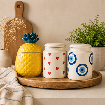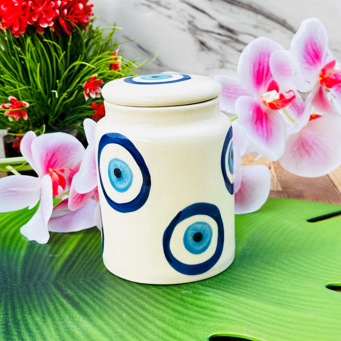 utensil master Airtight Evil Eye Ceramic Pickle Jars with Lid- 650 ML Capacity | Unique Decorative Jar for Pickles, Spices, Tea, Sugar, Coffee etc | Perfect for Gifting and Home Décor