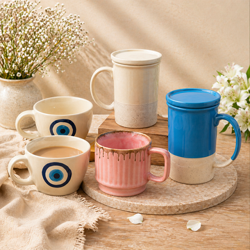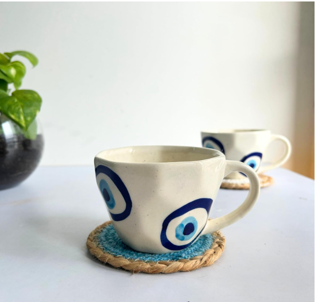utensil master Handmade Ceramic Evil Eye Print Cups - Microwave & Dishwasher Safe | for Home & Office Cup | Birthday Gift for Best Friend, Couples, Boyfriend, Ceramic Coffee Mug, Chai Cup