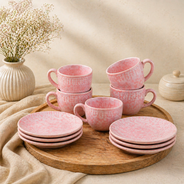 utensil master Elegant Cup Set – 150ml Each 6-Piece Ceramic Tea/Coffee Mugs, Perfect for Hot and Cold Beverages, Ideal for Home, Office, Gifting, Every Occasion – Stylish, Durable Kitchenware (Pink)